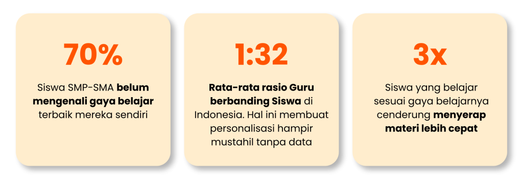 Inilah tantangan nyata yang dihadapi sekolah setiap hari. Guru mengajar puluhan siswa sekaligus, dengan gaya mengajar yang seragam — padahal setiap siswa memiliki cara kerja otak yang berbeda-beda. Tanpa alat ukur yang tepat, potensi siswa bisa terlewat begitu saja.
